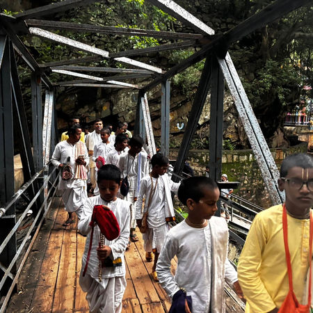 Traveling together fostered unity, cooperation, and mutual care among the students. Senior students and teachers guided the younger ones, strengthening bonds of responsibility and compassion within the Gurukul community.